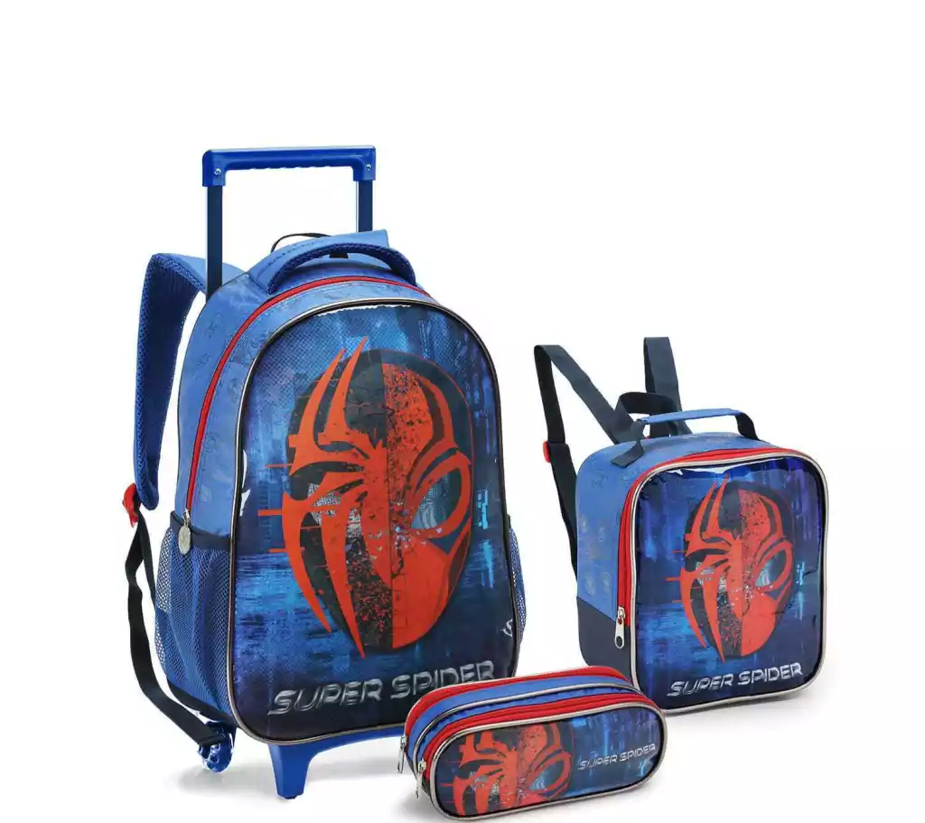 KIT COMPOSTO POR: MOCHILA INFANTIL 17 COM RODAS, BOLSOS LATERAIS PORTA GARRAFA, PUXADORES , IDENTIFICADOR NO VERSO, CARRINHO EMBUTIDO COM ALTURA ATÉ 75 CM, RODAS DE SILICONE E APOIO FRONTAL. 31 CM (L) X 43 CM (A) X 14 CM (P). LANCHEIRA TÉRMICA INFANTIL, SISTEMA TÉRMICO, ALÇA COSTAS REGULÁVEL, ELÁSTICO INTERNO PARA FIXAÇÃO DE GARRAFA, ELÁSTICO COSTAS PARA FIXAÇÃO NO CARRINHO. 20 CM (L) X 22 CM (A) X 11 CM (P). ESTOJO INFANTIL DUAS DIVISÓRIAS 21 CM (L) X 9.